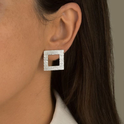 Brinco Prata 925 Quadrado Martelado Vazado Liso